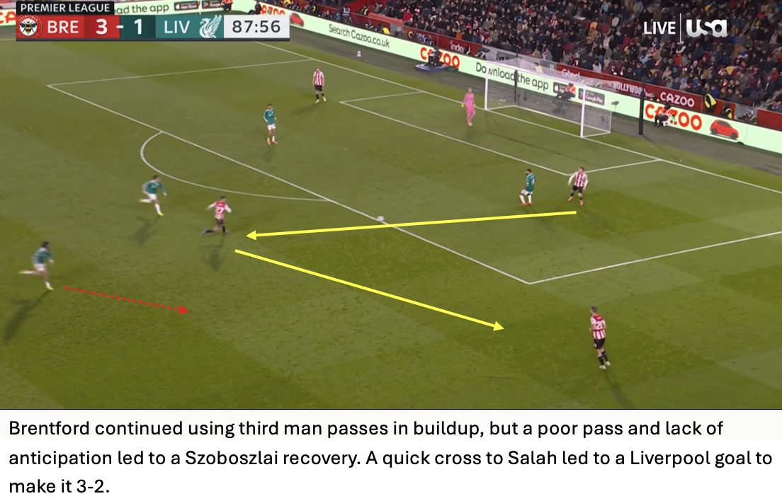 Pundits may claim Brentford only score from set pieces and long throws, but the bees still created 1.48 xG from open play. Others may claim that Brentford only launch it long, but fail to mention Liverpool’s 87 long passes, the most for Liverpool this season.