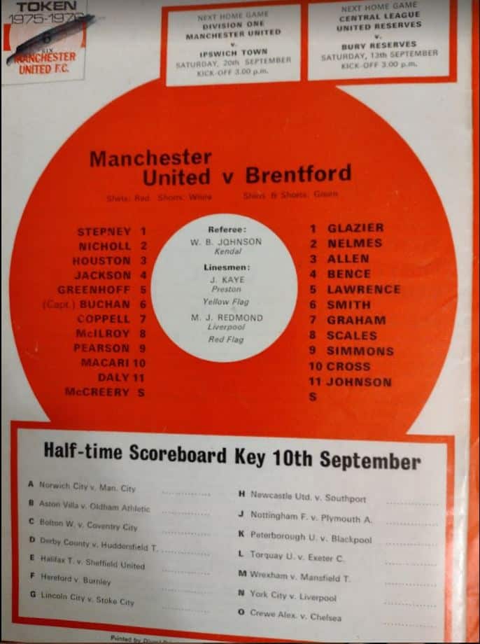 The match programme highlighted the fact that United boss Tommy Docherty was coming up against his namesake John, who was in the Brentford dugout, for the first time.