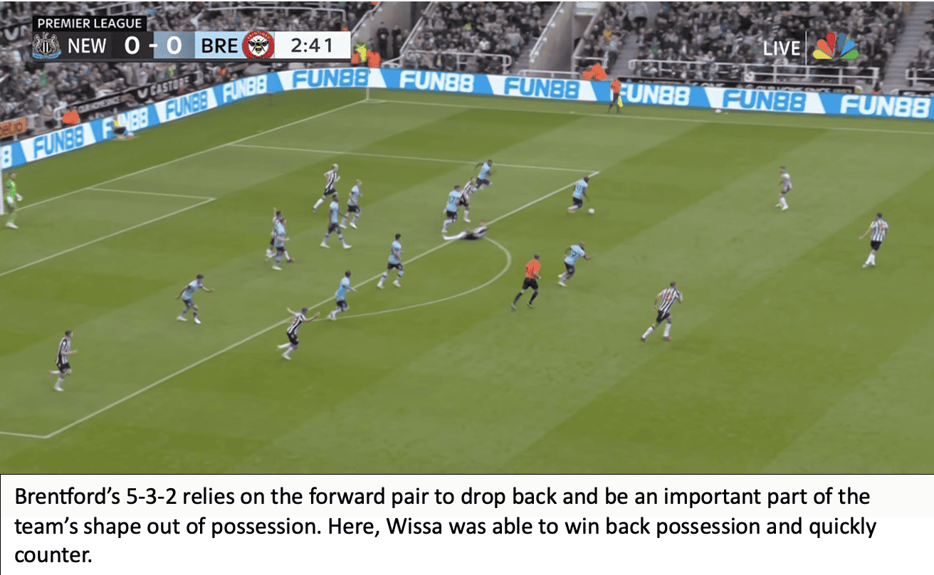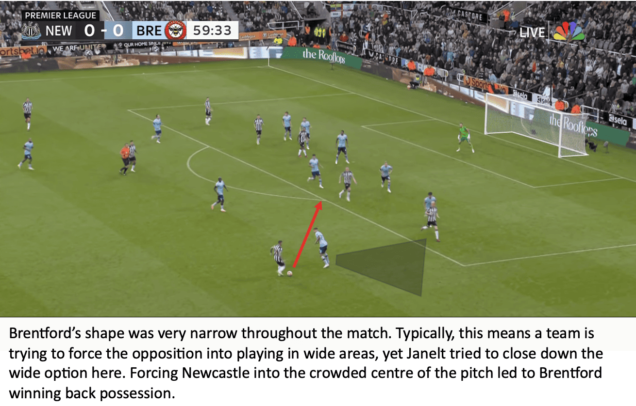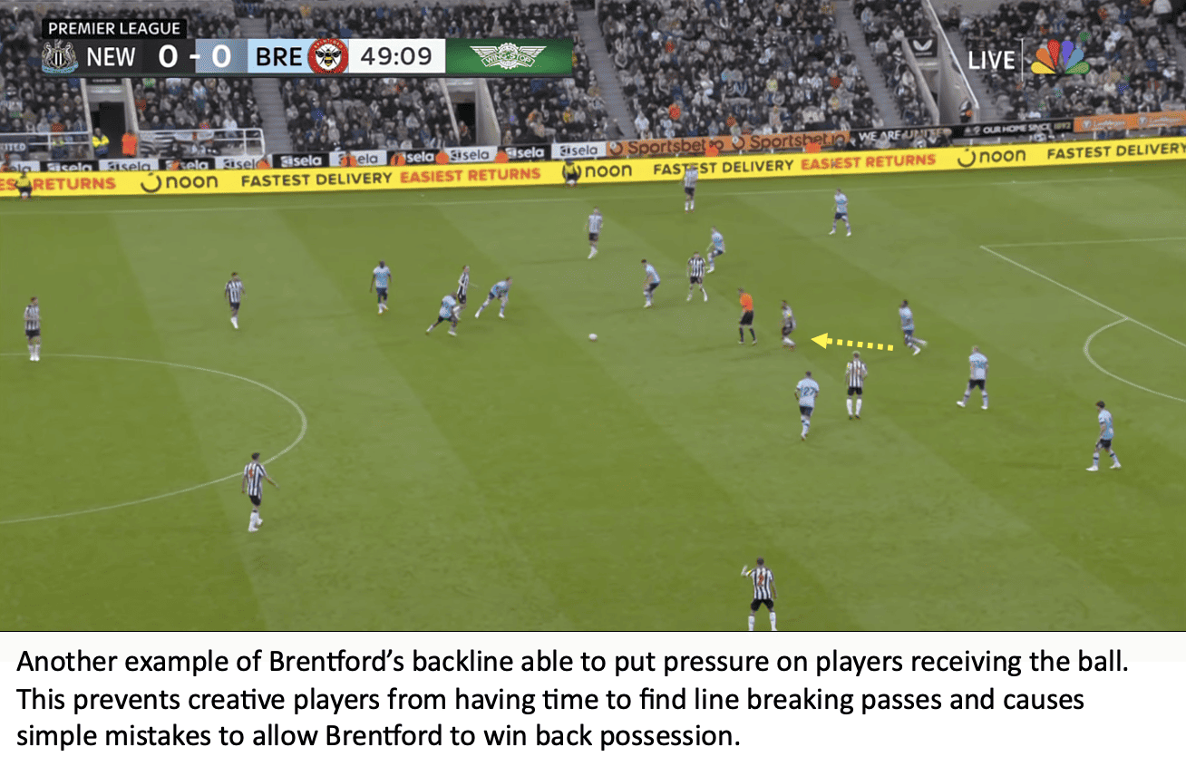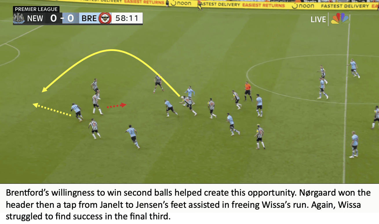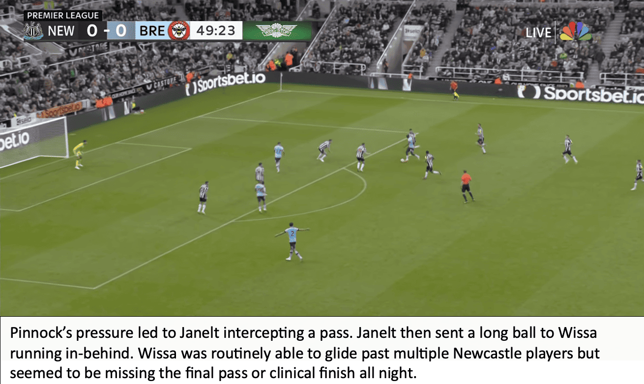 Brentford struggled to create chances of their own, which started with having difficulty advancing the ball. Newcastle’s high press caused Brentford trouble when in possession. The Bees also struggled to win aerial duels, making it more difficult to get into the final third.
