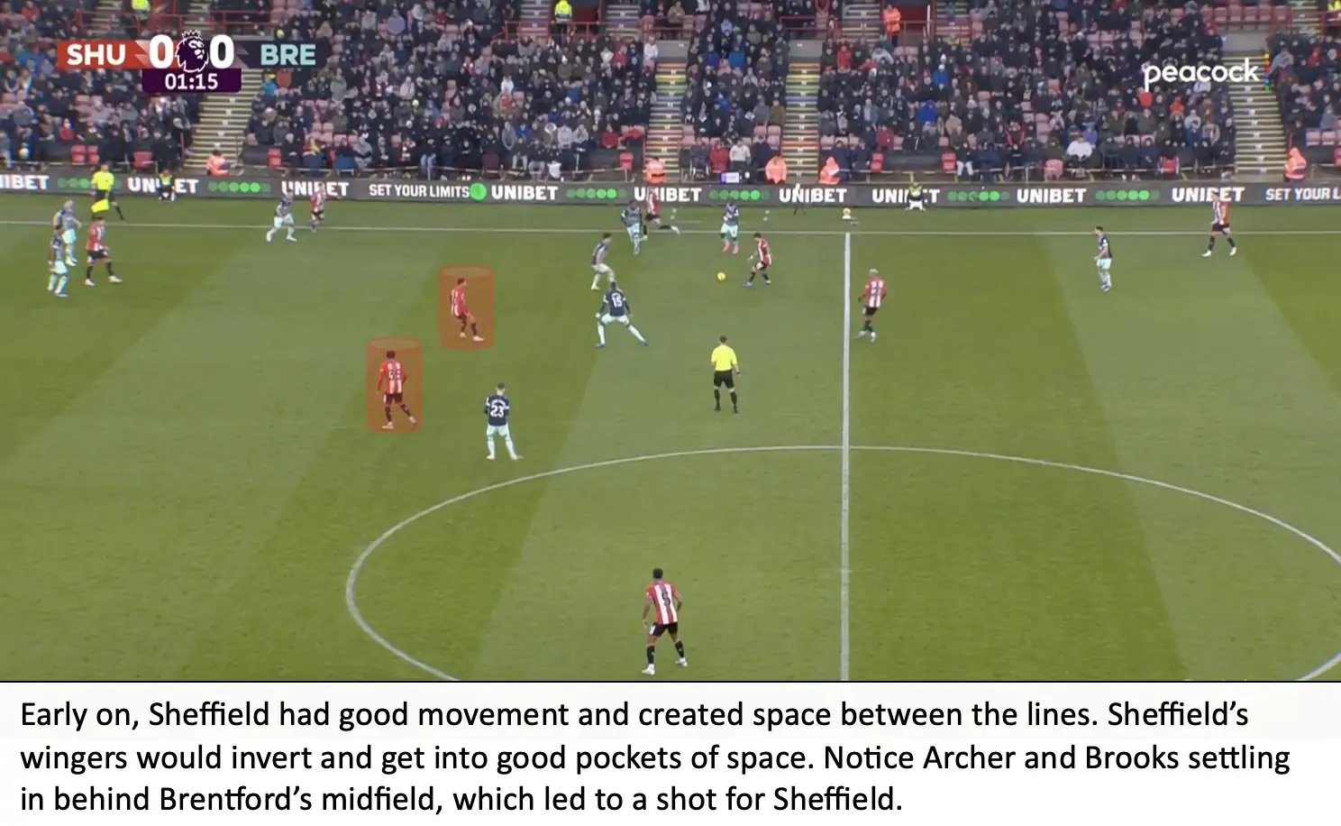 A poor showing on both sides, led to Brentford only creating 0.66 xG to Sheffield’s 0.81 xG. Brentford didn’t execute on set plays and failed to control the match as the possession statistics indicate.