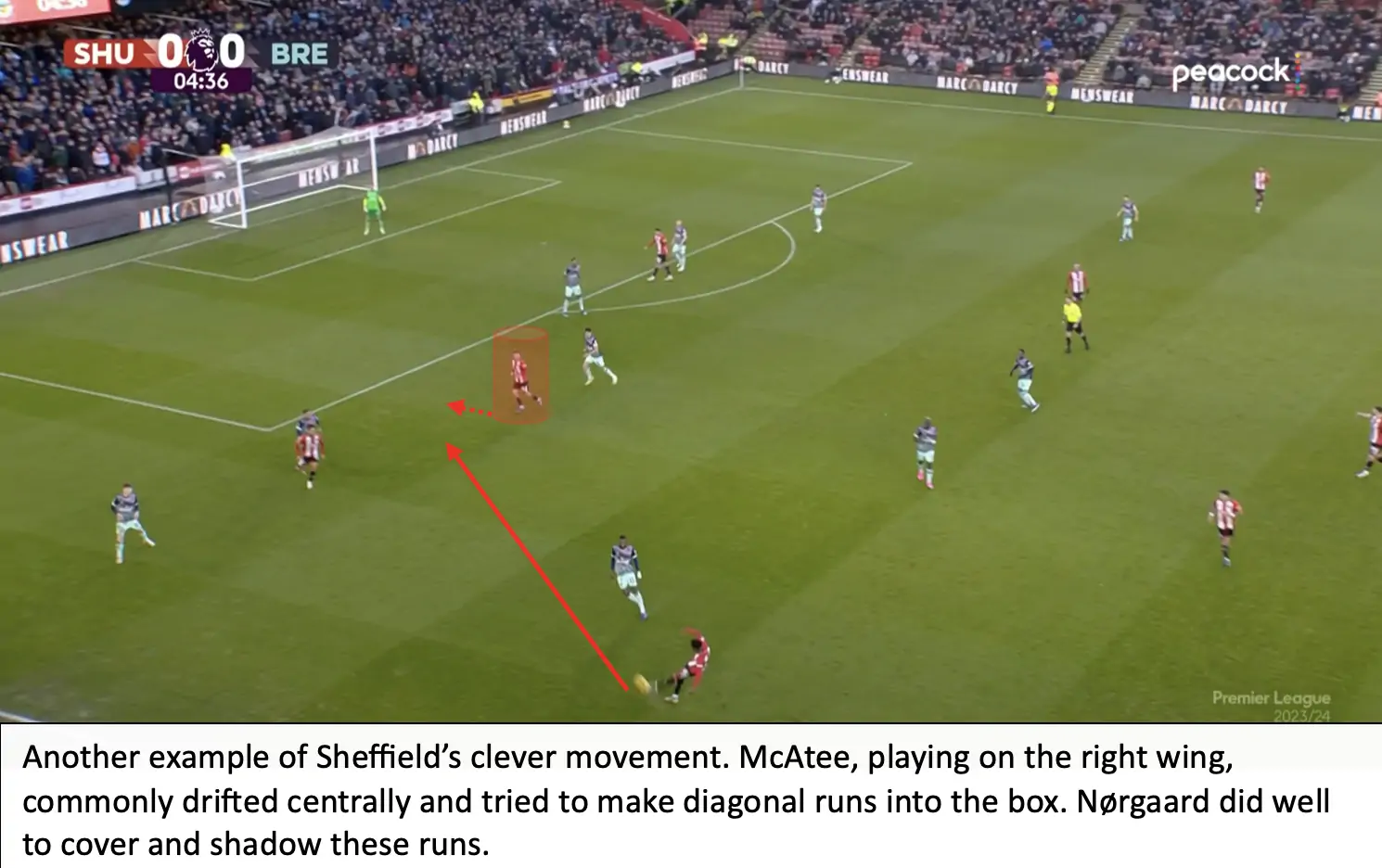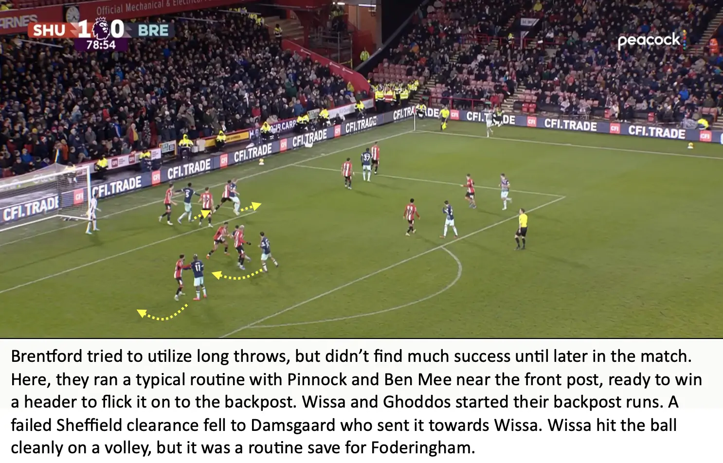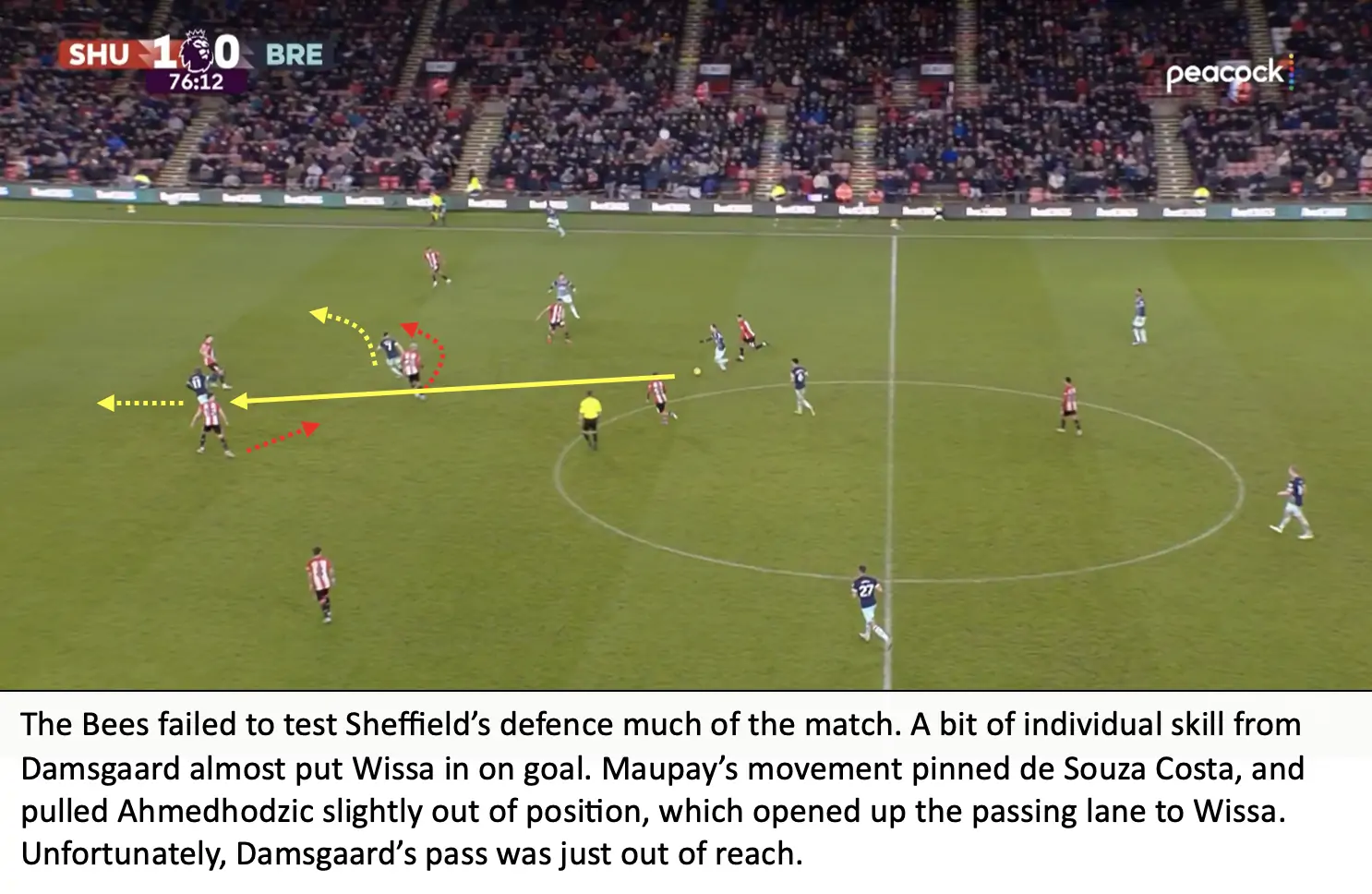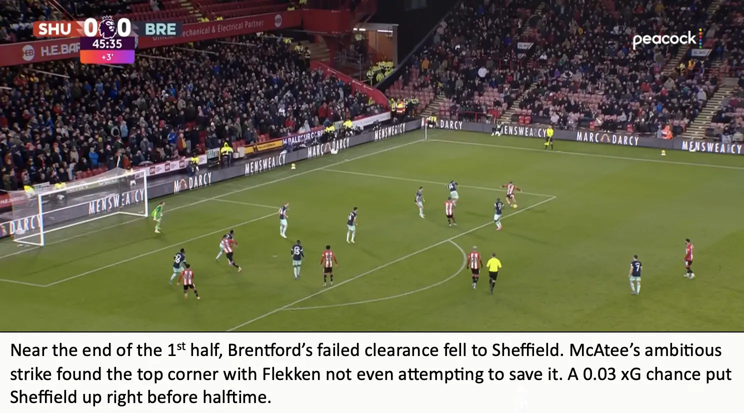 For a team that stresses the importance of winning second balls and aerial dominance, it was surprising to see Brentford won 38% of aerial duels, after only winning 34% of aerial duels in the midweek match against Brighton. Brentford also looked a bit slow compared to Sheffield, the Blades ended with 56 ball recoveries compared to Brentford’s 46.