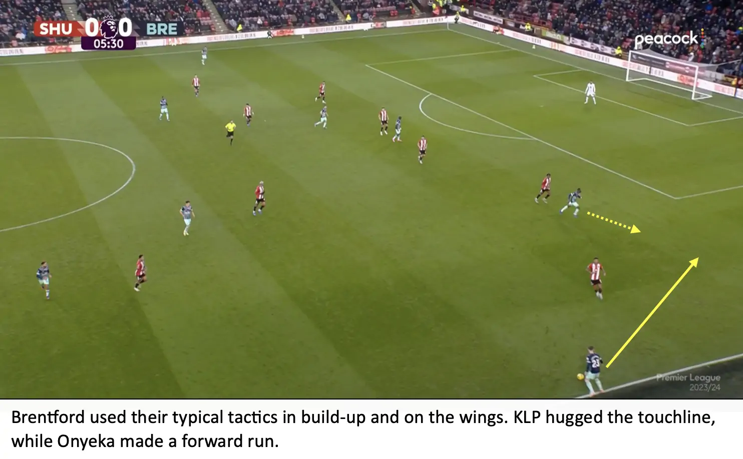 Brentford held 60% possession but struggled to create much going forward. They initially found some success with Keane Lewis-Potter in 1v1 situations on the right wing, but was missing the final pass.